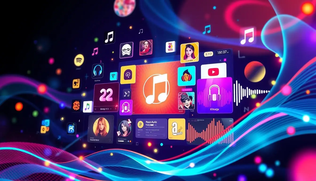 A digital representation of an abstract M3U playlist, featuring vibrant waves of colorful data streams and icons symbolizing various media formats, against a dark, tech-inspired background. Include elements like musical notes, video play symbols, and interconnected nodes to convey the idea of streaming and connectivity.
